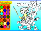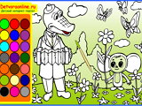 Раскраска онлайн по детскому советскому мультфильму Кот Леопольд. Раскрашивайте кота Леопольда, который пошел на рыбалку. И вот ему удалось поймать рыбку. Детская онлайн раскраска. Раскрась с любимыми героями советских мультфильмов.