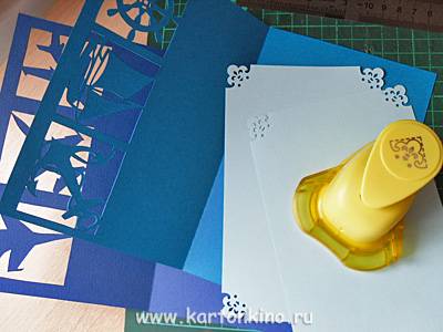 углового дырокола, штампиков и т.д. Приклеиваем к основе открытки.