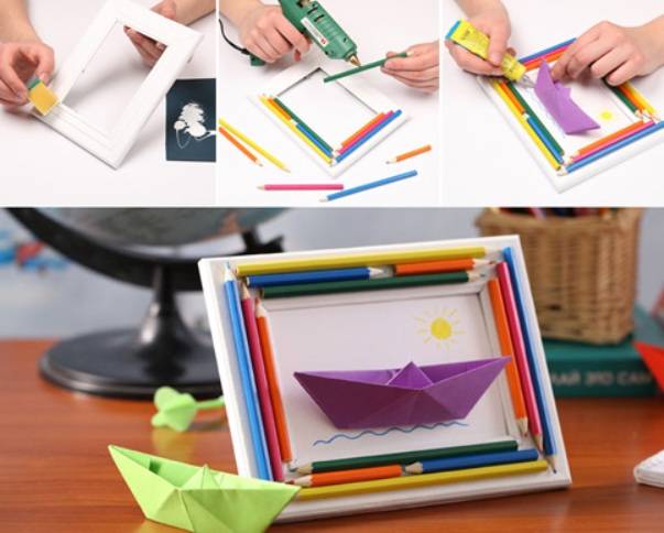 1. Приготовьте светлую рамку, и подберите цветные карандаши нужного размера.